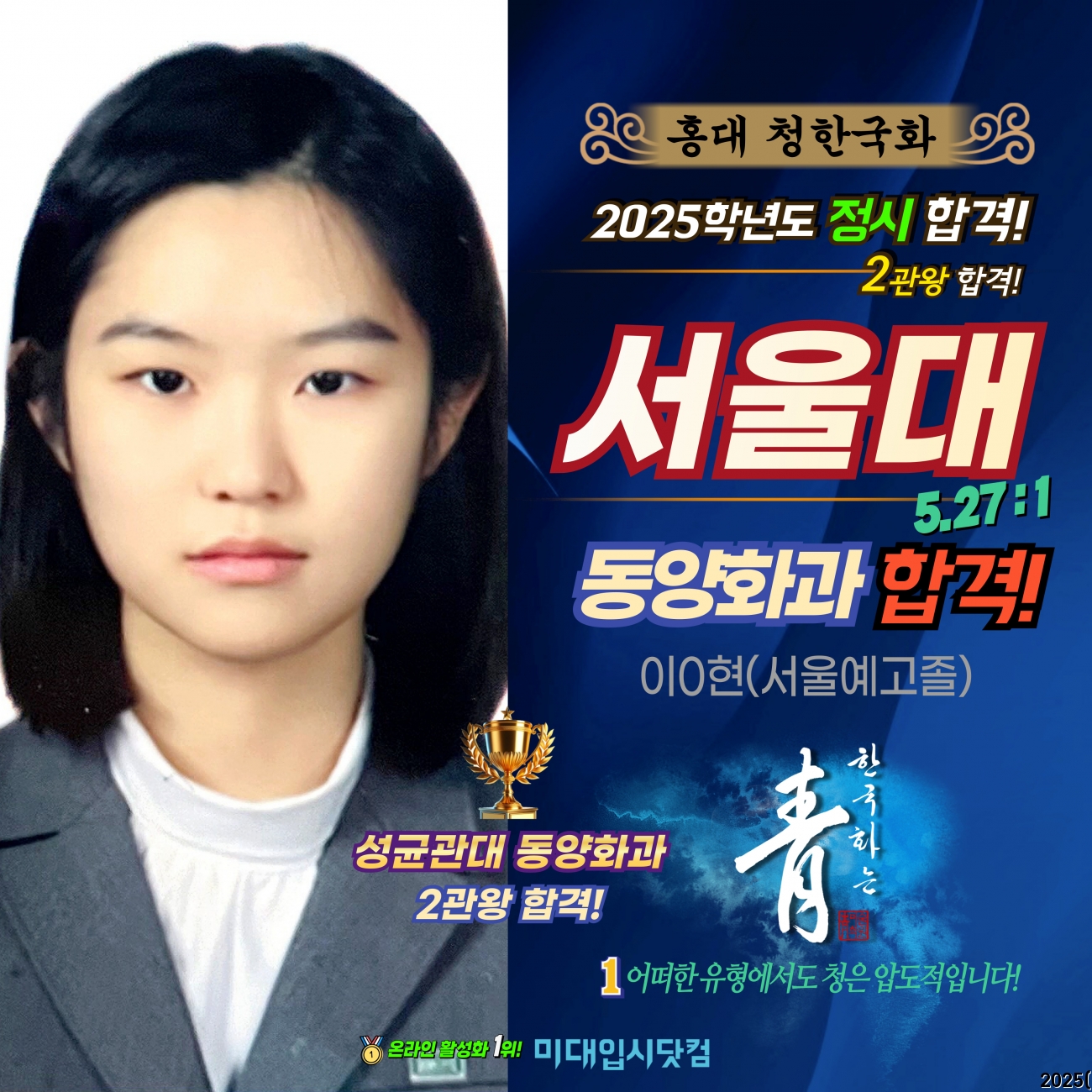¹Ì´ëÀԽôåÄÄ Çհݼö±â - 2025Çг⵵(Á¤½Ã) ¼­¿ï´ëÇб³ µ¿¾çÈ­°ú ÇÕ°Ý! ÀÌ0Çö(¼­¿ï¿¹°íÁ¹) - È«´ë û ¹Ì¼úÇпø